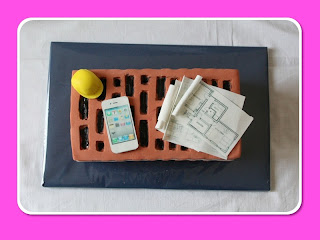 diesen habe ich eingeritzt um die Löcher im Ziegel anzudeuten, dadurch konnte ich die Fondantstücke dann heraus nehmen  und die Löcher noch ein bisschen herausmodellieren, um den Effekt noch zu verstärken, habe ich in die Löcher dann schwarze Lebensmittelfarbe gepinselt.